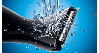 Możliwość pełnego mycia w wodzie Trymer i nasadki można z łatwością myć pod bieżącą wodą. Można również używać ich pod prysznicem. |