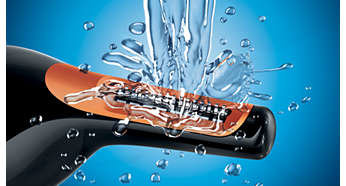| Możliwość pełnego mycia w wodzie Trymer i nasadki można z łatwością myć pod bieżącą wodą. Można również używać ich pod prysznicem. |