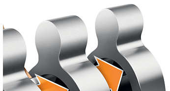 Niezwykle precyzyjne szczeliny umożliwiające ostre cięcie Dzięki niezwykle precyzyjnym szczelinom w nożyku i osłonce włosy usuwane są szybko i efektywnie. |