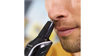 | Delikatne usuwanie zbędnych włosów z nosa i uszu Szybko i łatwo usuń niechciane włosy z nosa i uszu. |