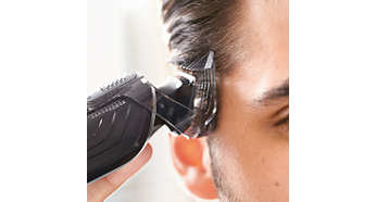 Większa prędkość cięcia do szybkiego strzyżenia grubych włosów Szybko strzyż nawet najgrubsze włosy. Dzięki zwiększeniu prędkości cięcia funkcja turbo pomaga w strzyżeniu najdłuższych i najgęstszych partii włosów. |