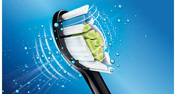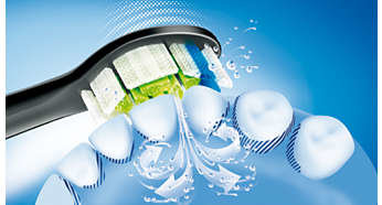 | Produkt stworzony, aby zmaksymalizować ruch soniczny W główkach szczoteczki Philips Sonicare zastosowano podstawową technologię wysokiej częstotliwości i amplitudy, dzięki czemu wykonują one ponad 31 tys. ruchów szczotkujących na minutę. Niezrównana technologia soniczna przenosi całą moc z uchwytu do samego końca główki szczoteczki. Ruch soniczny umożliwia dynamiczne czyszczenie, kierując płyn głęboko między zęby i wzdłuż linii dziąseł, co gwarantuje delikatne, a zarazem skuteczne czyszczenie za każdym razem. |
