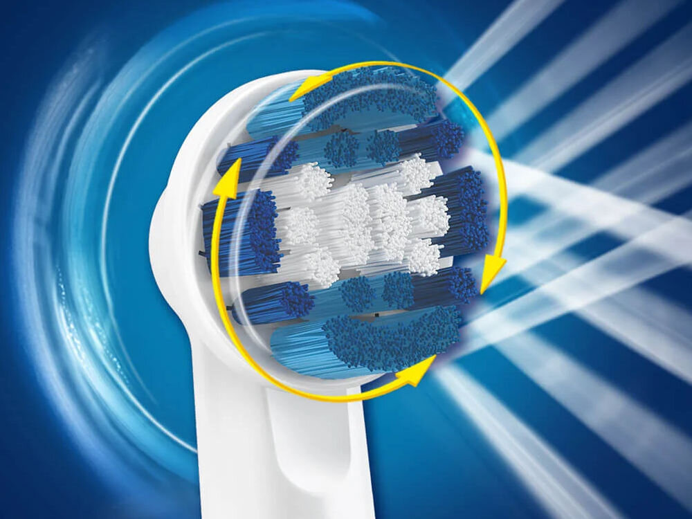 Końcówka ORAL-B Precision Clean jest wzorowana na profesjonalnym sprzęcie dentystycznym, dzięki czemu usuwa do 100% więcej płytki nazębnej niż zwykła szczoteczka manualna. Jej włókna sięgają głęboko między zęby i obejmują dużą powierzchnię jednocześnie, więc czyszczenie za jej pomocą jest bardzo dokładne. Pamiętaj, że według zaleceń stomatologów, końcówkę należy wymieniać co około 3 miesiące.