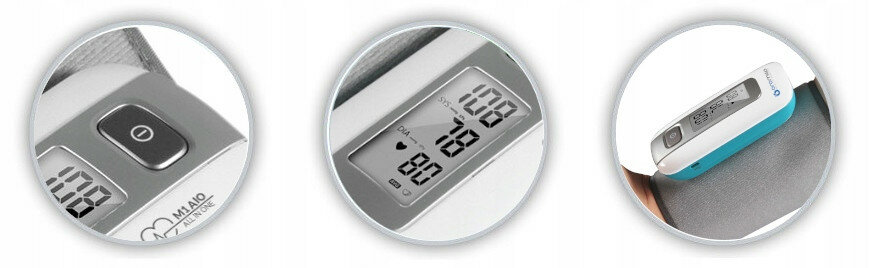 Ciśnieniomierz ma duży wyświetlacz LCD, na którym widnieją duże oznaczenia. Dzięki temu nawet seniorzy nie powinni mieć problemu z ich odczytaniem. Poza ciśnieniem i pulsem można na nim także znaleźć wskaźnik zużycia baterii. Urządzenie ma funkcję rozpoznawania arytmii serca oraz wskaźnik klasyfikacji wyniku pomiaru ciśnienia wg WHO - Światowej Organizacji Zdrowia. By zapewnić jak najdokładniejszy pomiar, ciśnieniomierz kontroluje położenie mankietu oraz wykrywa ruch.
