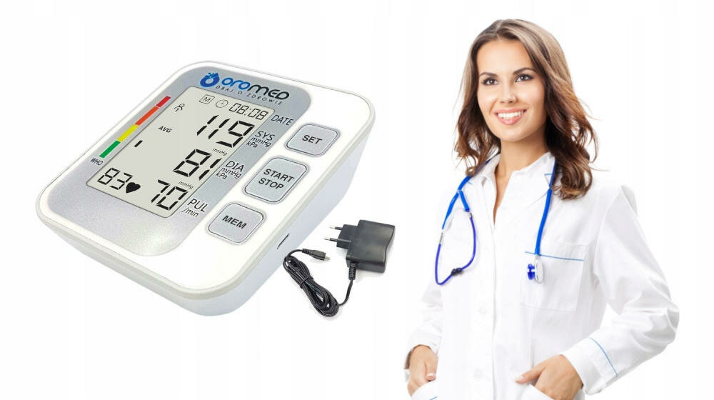 Poznaj ciśnieniomierz naramienny ORO-N5 CLASSIC. Jest to nowoczesne urządzenie do pomiaru i monitorowania ciśnienia krwi oraz pulsu. Jest to ciśnieniomierz elektroniczny, w którym zastosowano oscylometryczną metodę pomiaru z zastosowaniem technologii FUZZY LOGIC. Charakteryzuje się wysoką dokładnością pomiaru. Dokładność ta została potwierdzona badaniami klinicznymi. Wykonanie dokładnego pomiaru ciśnienia jest niezwykle proste – wymaga przyciśnięcia jednego przycisku. Ergonomiczny wyświetlacz LCD zapewnia łatwy odczyt wyniku pomiaru. Dzięki funkcji wykrywania objawów arytmii - uzyskujemy sygnał w ewentualnej potrzebie zdiagnozowania arytmii przez lekarza. Urządzenie posiada funkcję pamięci, co pozwala na wyświetlenie wartości 2 X 99 ostatnich pomiarów wraz ze specyfikacją daty i godziny pomiaru po wciśnięciu odpowiedniego przycisku. Funkcja automatycznego wyłączania zmniejsza zużycie baterii. Ciśnieniomierz posiada funkcję uśredniania wyników 3 ostatnich pomiarów. Dzięki tej funkcji otrzymujemy informację o średniej wartości ciśnienia, która jest bardziej miarodajna niż wynik pojedynczego pomiaru.