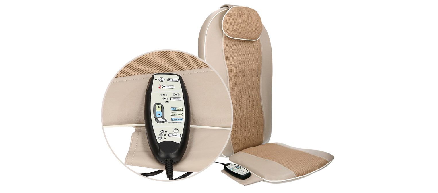 Całość sterowana jest za pomocą bardzo przejrzystego i czytelnego pilota. Łatwy montaż, za pomocą elastycznych zacisków - nawet na domowych krzesłach czy fotelach. Łatwy do czyszczenia materiał.