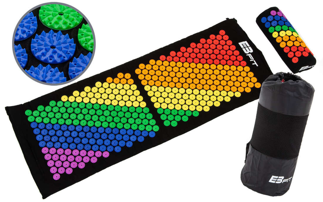 Mata masująca EB FIT 1039404 pokryta została warstwą stożkowych, wykonanych z tworzywa sztucznego kolców. Po ułożeniu się na niej użytkownik zaczyna odczuwać przyjemny masaż, który uspokaja całe ciało, łagodzi nerwobóle i pomaga się uspokoić po wymagającym dniu. Każdy ze znajdujących się na macie stożków został ukierunkowany w określony sposób, dzięki czemu efekt masażu jest odczuwany w jeszcze wyraźniejszy sposób.