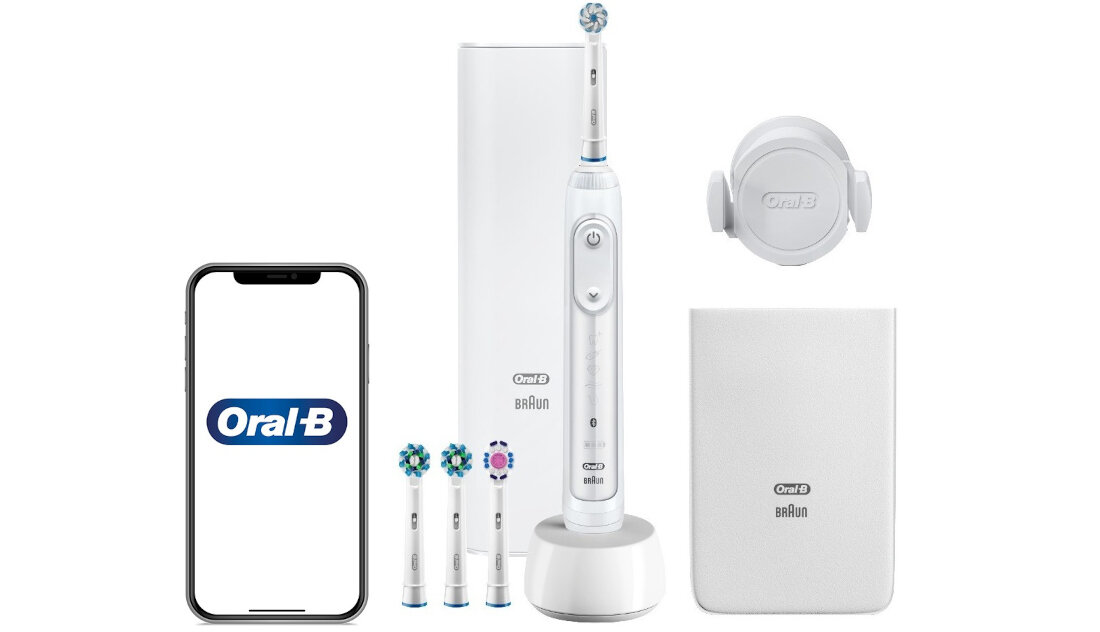 Pierścień LED SmartRing pozwala dostosować 12-kolorowy efekt wizualny, uprzyjemniając czas szczotkowania zębów. Seria 10000 pozwala nam połączyć się z aplikacją Oral-B.