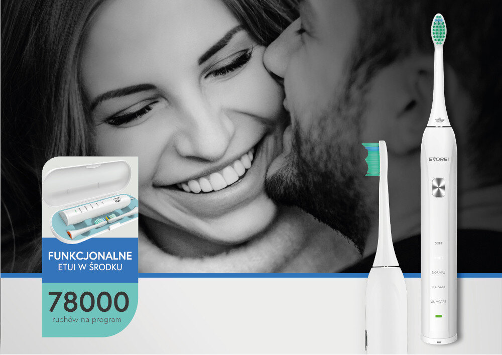 Evorei Sonic 2 to nieskazitelnie biała szczoteczka soniczna, która usunie zanieczyszczenia oraz płytke nazebna z Twoich zebów. Zostaw tradycyjne, reczne szczoteczki do zebów i poznaj przyszłosc higieny jamy ustnej.