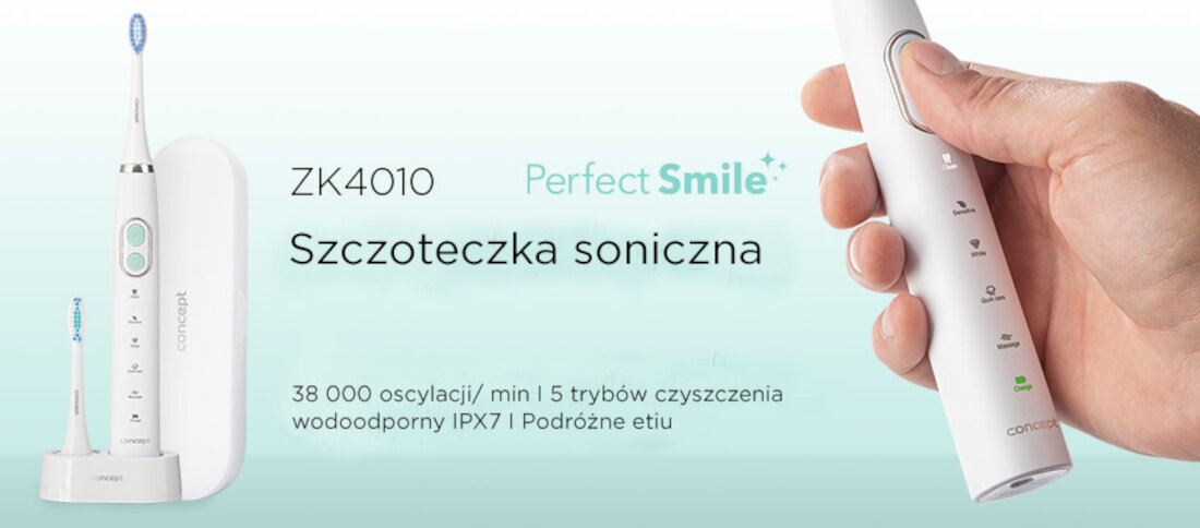 Szczoteczka soniczna CONCEPT ZK4010, końcówka Daily Clean, końcówka Sensitive, stacja ładująca, etui podróżne.