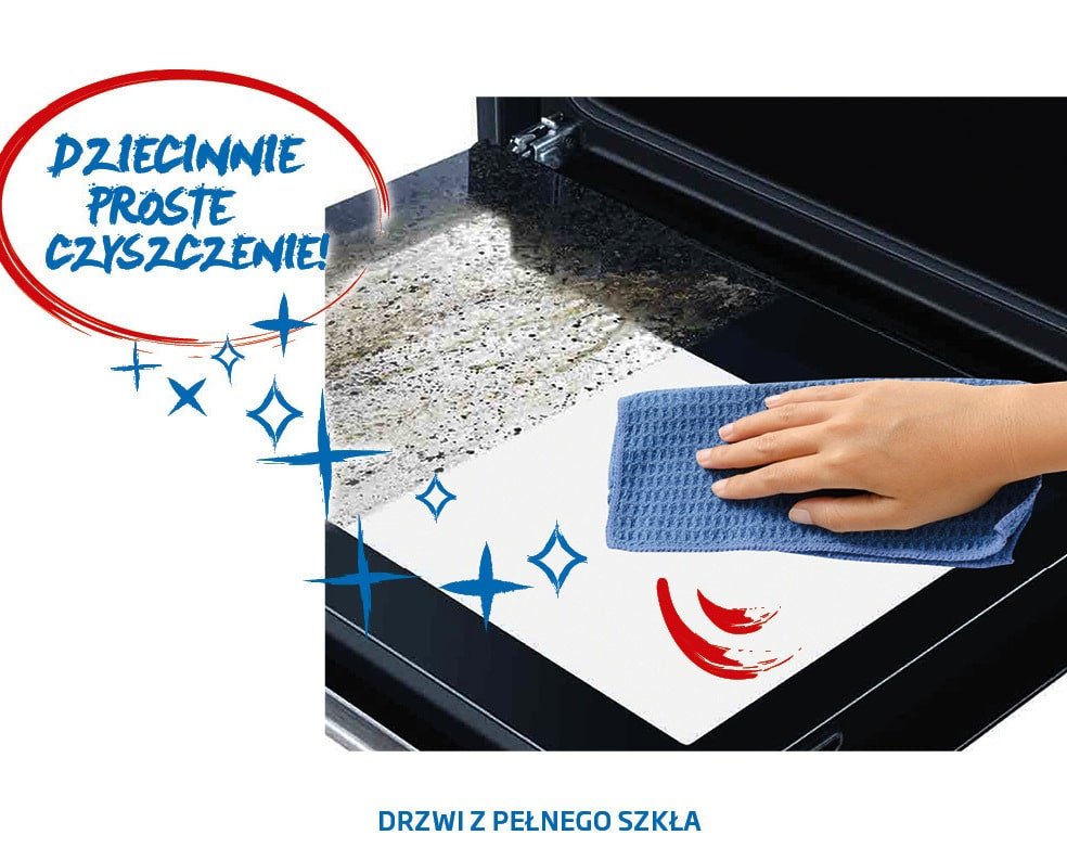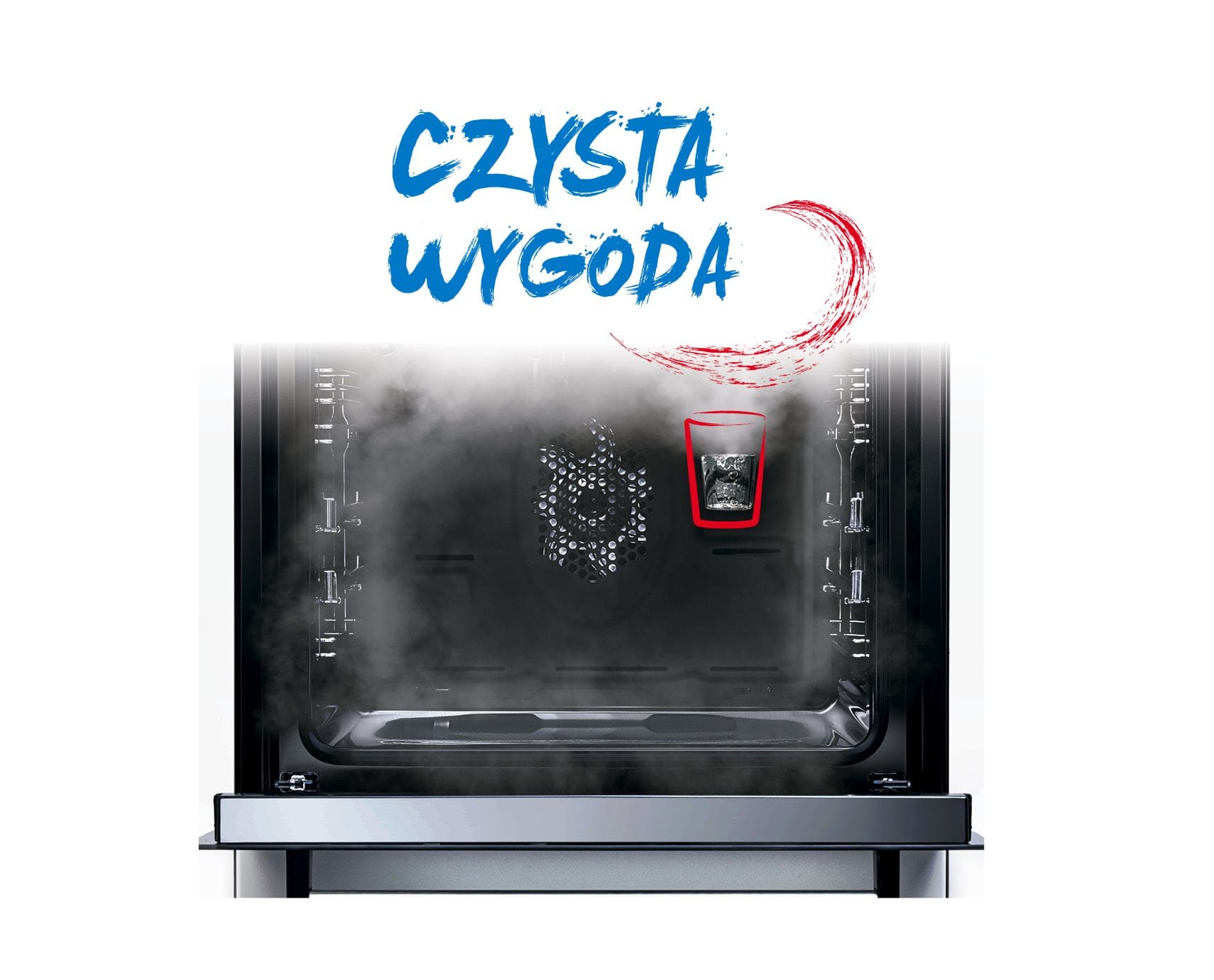 | Czyszczenie parowe Funkcja pomaga zmiękczyć najbardziej uporczywe zabrudzenia i tłuste plamy, dzięki czemu czyszczenie komory piekarnika jest jeszcze prostsze. |