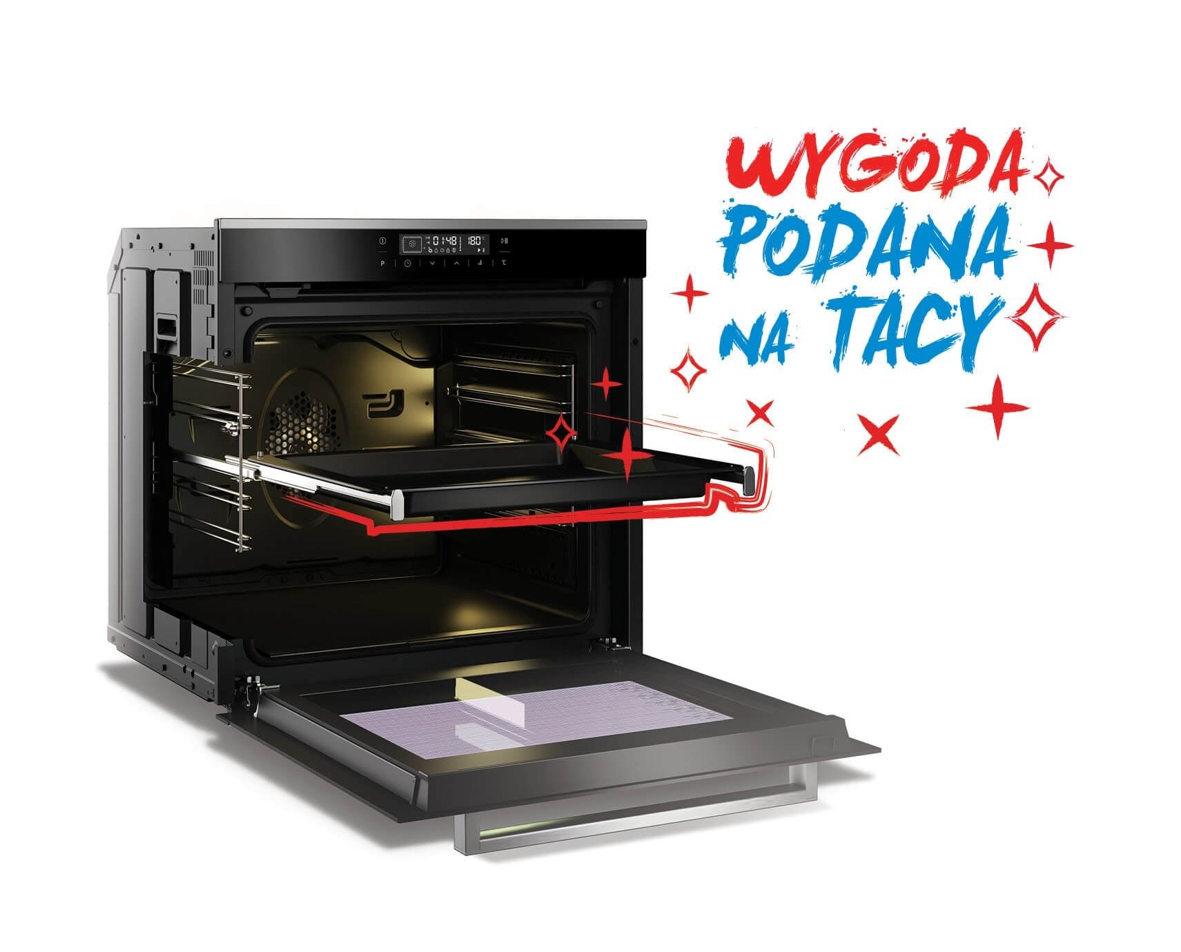 Prowadnice teleskopowe Dzięki prowadnicom teleskopowym można bezpiecznie i łatwo wysunąć tacę z gorącym daniem, unikając przypadkowego poparzenia. |