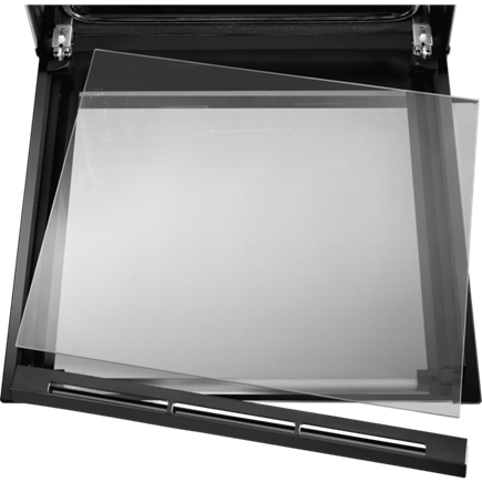 Łatwe do wyczyszczenia szklane drzwi Dzięki pomysłowej konstrukcji tej kuchenki można całkowicie wymontować wewnętrzną szybę z drzwi jej piekarnika. Znacząco ułatwia to jego dokładne wyczyszczenie. |