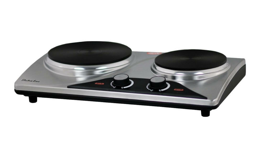 Wygodne gotowanie poza domem lub w nietypowych warunkach? Teraz to możliwe, dzięki kuchence elektrycznej z dwoma palnikami - żeliwnymi płytkami, marki ELECTRO-LINE. Jest ona idealna do domków letniskowych, na kemping lub do małej kuchni. Średnica pól grzejnych: 15,5 cm oraz 18,8 cm. Model ten wyposażony jest w płynną regulację temperatury, termostat, a także antypoślizgowe nóżki, zapewniające stabilność urządzenia, w czasie jego pracy. Zaletą kuchenki jest łatwe czyszczenie powierzchni. Posiada termiczny wyłącznik bezpieczeństwa.