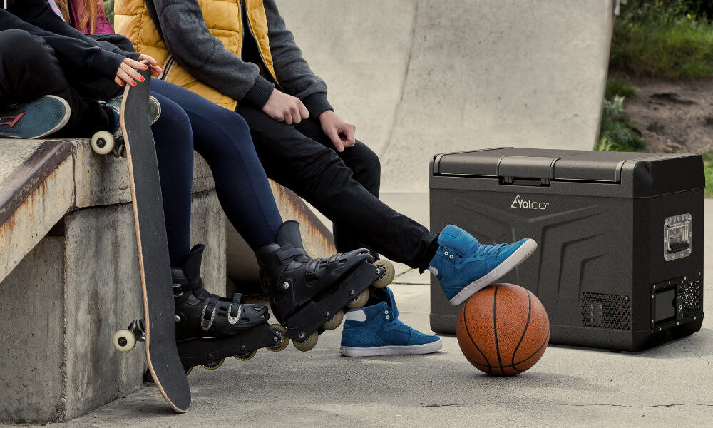 Lodówka YOLCO GCX47 o pojemności 47 l została wyposażona w slot na baterię modułową, gniazda zasilania i wewnętrzne kosze, które pozwalają na sprawną organizację i łatwy dostęp do zawartości lodówki.