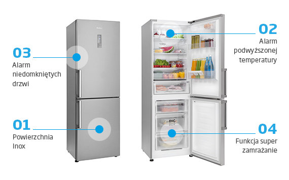 Aby zachować świeżość Twoich produktów na dłużej stworzyliśmy system który sygnalizuje poprzez dźwięk i światło problemy w utrzymaniu odpowiedniej temperatury w lodówce.