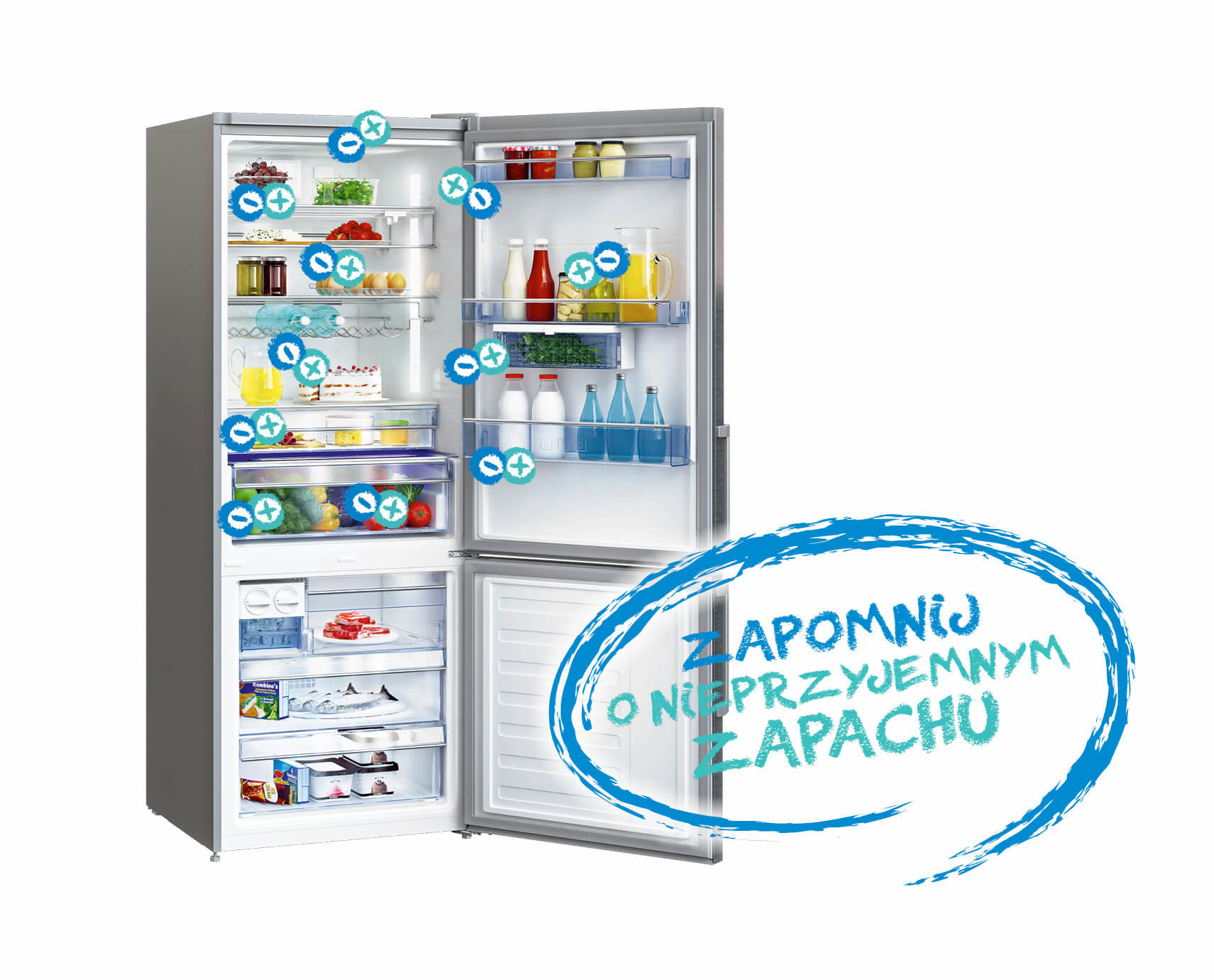 Aktywny jonizator | Pozbądź się niechcianych zapachów z lodówki Aktywny jonizator neutralizuje bakterie, wirusy i cząsteczki, które wywołują niechciane zapachy, budując szczelną, higieniczną barierę. W sytuacji, w której przez nieuwagę wstawimy do chłodziarki koszyczek malin i któraś jest spleśniała, jonizator zapobiegnie krążeniu zalążków grzybów w powietrzu. Powietrze w lodówce pozostaje czyste, dzięki czemu Twoja żywność może być przechowywana jeszcze dłużej. |