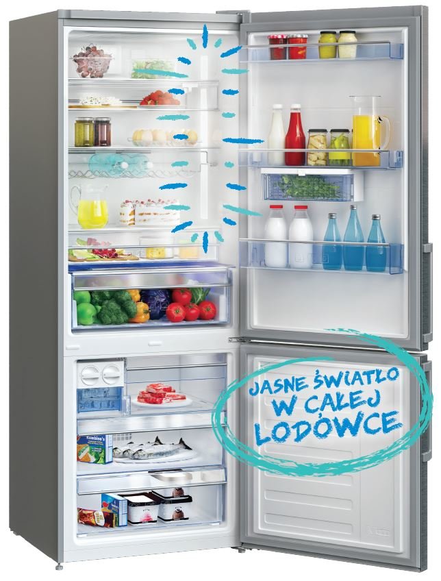 | Oświetlenie LED | Zapewnij sobie komfort użytkowania lodówki Komfort nocnych marków również jest dla nas ważny. Ta lodówka Beko posiada oświetlenie LED, które dzięki innowacyjnym, bardzo efektywnym żarówkom, pozwala otrzymać światło zbliżone do naturalnego, o jasnym, przyjaznym dla oka odcieniu. Oświetlenie LED jest również energooszczędne, więc pozwala na tańsze i bardziej ekologiczne użytkowanie urządzenia. |