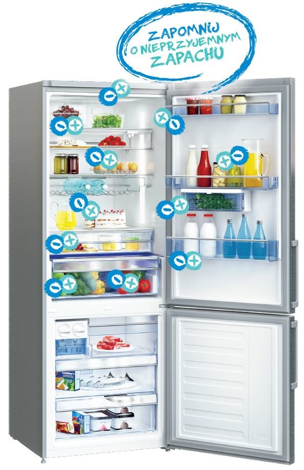 | Aktywny jonizator | Pozbądź się nieprzyjemnych zapachów z lodówki Aktywny jonizator neutralizuje bakterie, wirusy i cząsteczki, które wywołują niechciane zapachy, budując szczelną, higieniczną barierę. W sytuacji, w której przez nieuwagę wstawimy do chłodziarki koszyczek malin i któraś jest spleśniała, jonizator zapobiegnie krążeniu zalążków grzybów w powietrzu. Powietrze w lodówce pozostaje czyste, dzięki czemu Twoja żywność może być przechowywana jeszcze dłużej. |