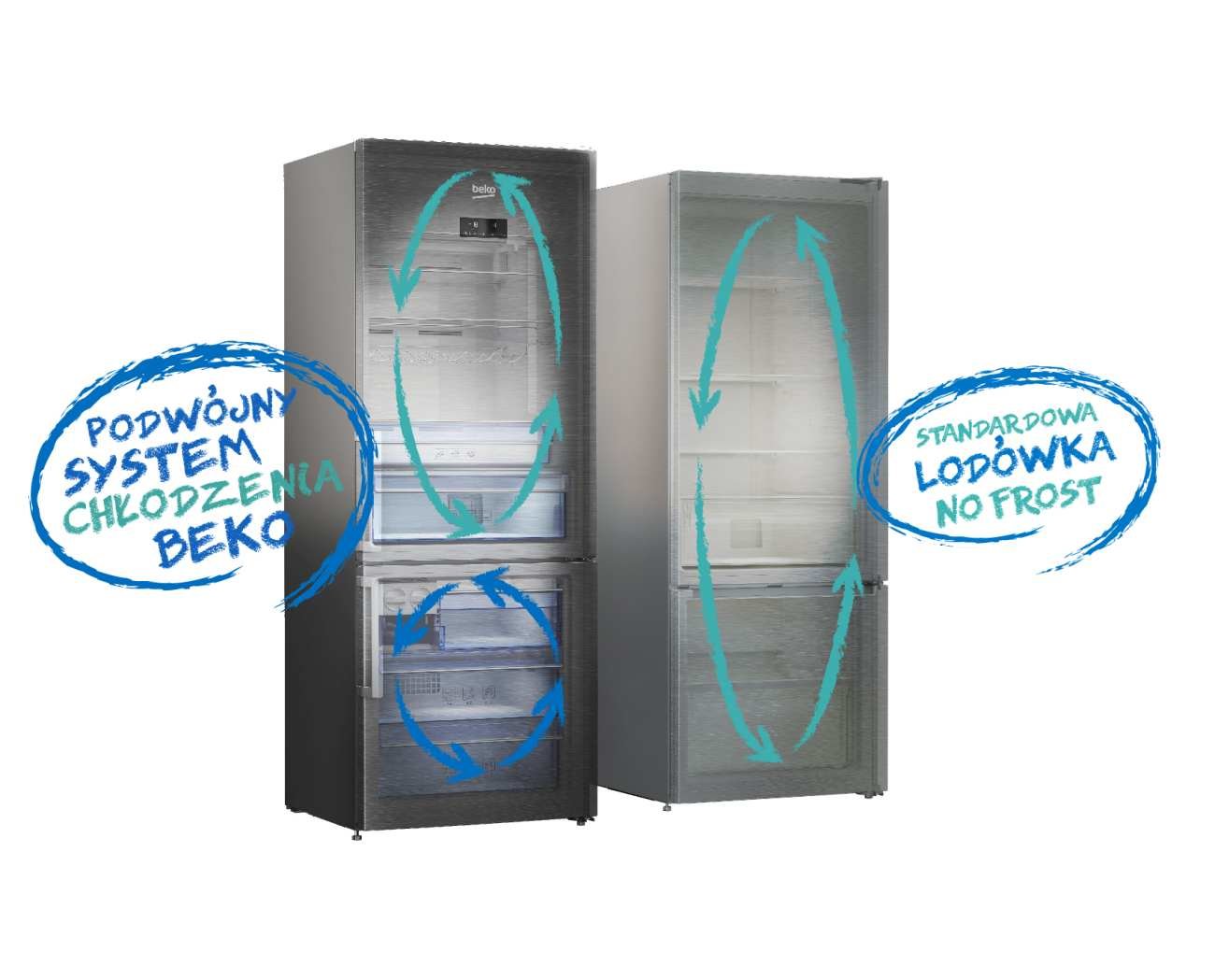 NeoFrost Technologia NeoFrost nie tylko eliminuje powstawanie lodu na żywności oraz wewnątrz urządzenia, co oznacza, iż rozmrażanie nie jest już potrzebne. To także dwa (lub trzy - w lodówkach typu side-by-side) niezależne parowniki i wentylatory w jednym urządzeniu. |