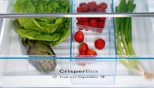 CripserBox to specjalna szuflada, która zapewnia najlepsze warunki do przechowywania owoców i warzyw. Panujące tam warunki gwarantują, że produkty dłużej zachowują świeżość. Szuflada zapewnia idealnie prostą obsługę i łatwiejszy dostęp do żywności.