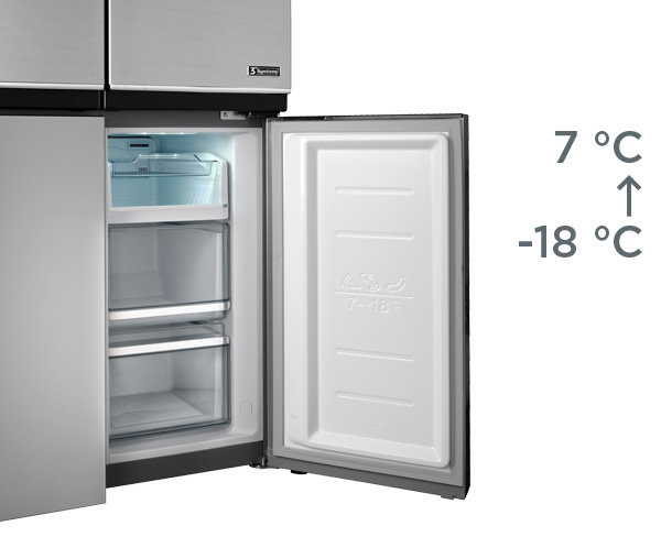 | Zmienna strefa O pojemności 70 l to przestrzeń, która w zależności od potrzeb może być używana jako chłodziarka, zamrażarka lub strefa zerowa. Temperaturę w tej części lodówki można regulować w zakresie od -18 do 7°C. |