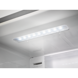 Trwałe i oszczędne oświetlenie LED w obu komorach Gdy rozpakowujesz zakupy lub szukasz czegoś konkretnego w chłodziarce, musisz mieć możliwość sprawdzenia, co i gdzie znajduje się w jej wnętrzu. Dlatego obie komory tego urządzenia zostały wyposażone w trwałe i energooszczędne oświetlenie LED. Charakteryzuje się ono dłuższą żywotność i zużywa mniej energii. |