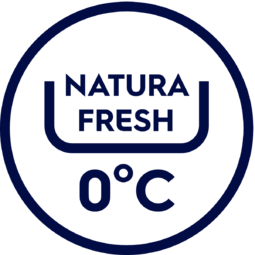 Szuflady NaturaFresh umożliwiające zachowanie świeżego smaku i konsystencji Specjalny schowek NaturaFresh utrzymuje temperaturę bliską 0°C – najlepszą do przechowywania mięsa i ryb. Umieszczone w szufladach zachowują one swoją świeżość do trzech razy dłużej. A ponieważ te delikatne produkty są przechowywane oddzielnie, możliwe jest również lepsze zachowanie ich smaku i konsystencji. |