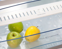 Szuflada na warzywa i owoce Pojemna szuflada z systemem monitorowania poziomu wilgotności dla optymalnego przechowywania owoców i warzyw.