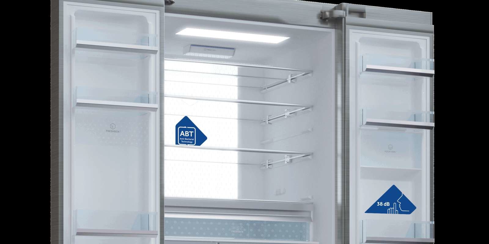 | Lampa antybakteryjna ABT® Specjalna lampa antybakteryjna ABT® emituje promienie UV, które eliminują bakterie w komorze chłodziarki, zapewniając najwyższy poziom higieny oraz długotrwałą świeżość przechowywanych produktów. |