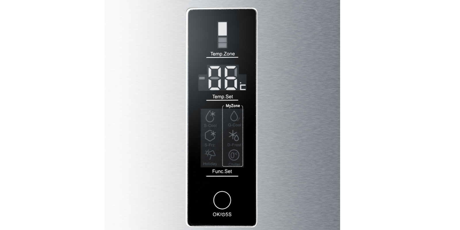 | Komora chłodzenia MyZone MyZone to specjalna szuflada w chłodziarce do przechowywania produktów z możliwością regulacji żądanej temperatury. Samodzielnie decydujesz czy chcesz wykorzystać komorę MyZone do chłodzenia, rozmrażania, wstępnego zamrażania czy przechowywania łatwo psujących się produktów. Zakres temperatur w strefie MyZone wynosi od -3 do 5 stopni Celsjusza. |