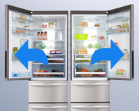 | Obustronny montaż drzwi Dzięki możliwości obustronnego montażu drzwi nie musisz się już martwić, czy lodówka będzie pasować do układu Twojej kuchni.