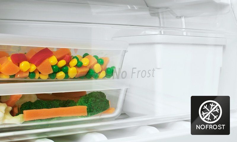 Technologią NoFrost automatycznie odprowadza nadmierną wilgoć w komorze chłodzenia. Dzięki niej możesz zapomnieć o rozmrażaniu zamrażalnika - lód i szron po prostu w nim nie powstają! Przechowywane produkty wewnątrz chłodziarki zachowują świeżość na dłużej.