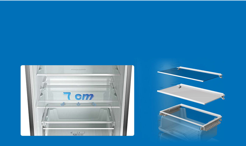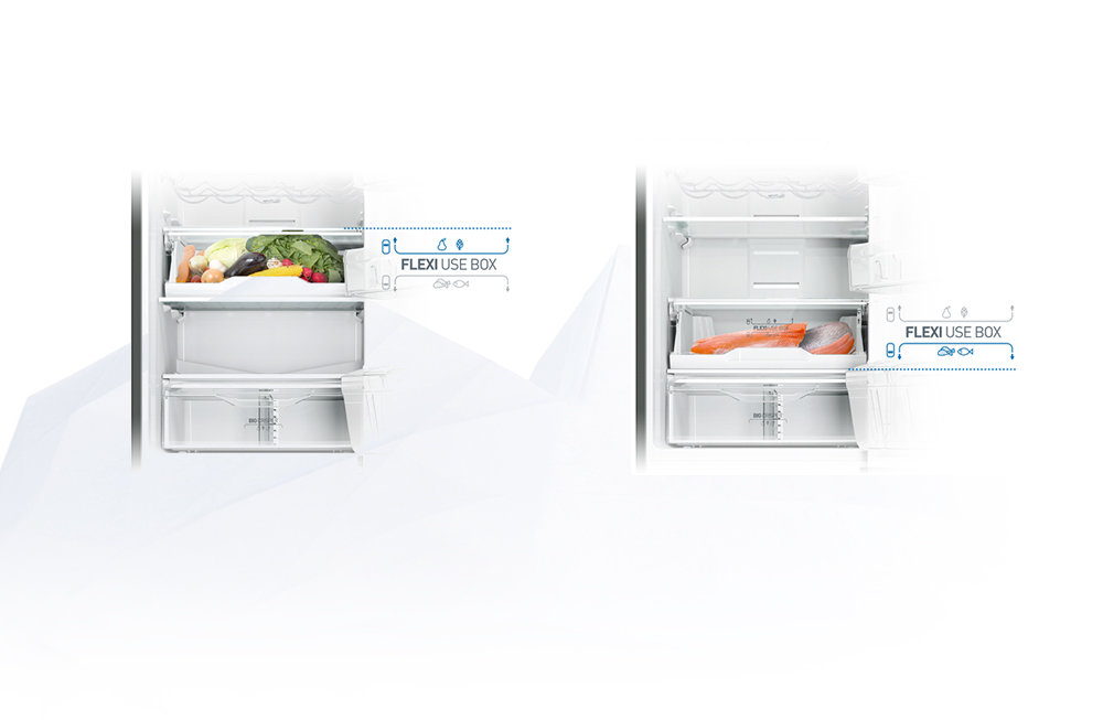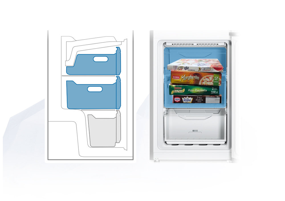 Wielofunkcyjna komora zamrażalnika – możesz wyjąć dwie pierwsze szufladyoraz półkę między nimi i tym samym powiększyć przestrzeń nawet o 38%!