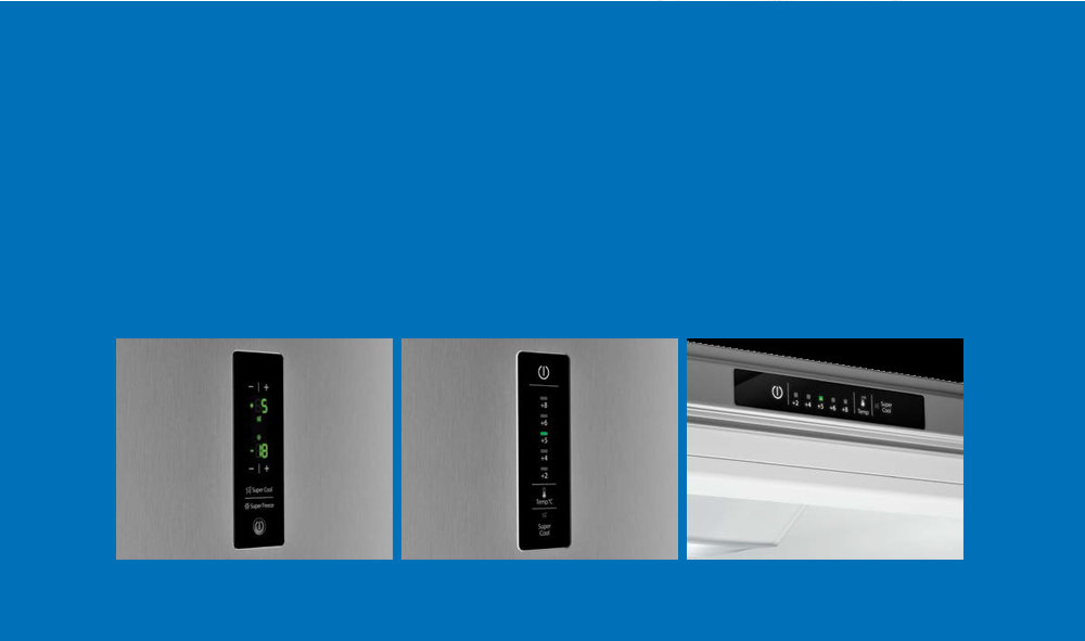 Interaktywny wyświetlacz gwarantuje precyzję w regulacji temperaturyi maksymalne mozliwości w wykorzystaniu funkcji lodówki, takich jak: