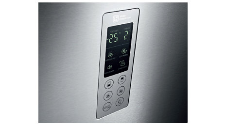 Zewnętrzny panel sterujący znajdujący się na drzwiach umożliwia sterowanie wszystkimi funkcjami bez otwierania drzwi. Panel posiada cyfowe wyświetlacze temperatury w chłodziarce i zamrażarce.