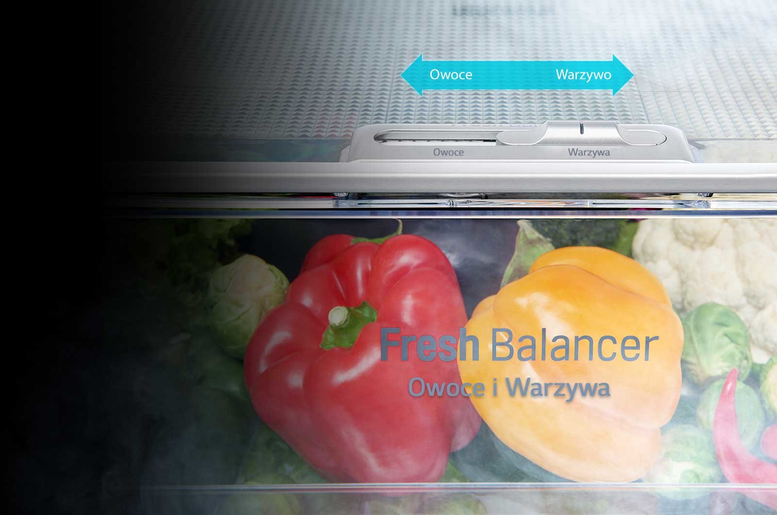Fresh Balancer™ Unikatowa, opracowana przez firmę LG technologia FRESH Balancer™ gwarantuje optymalny poziom wilgotności przez uszczelnienie pojemnika na warzywa. Pozwala w ten sposób dłużej zachować świeżość jarzyn i owoców.