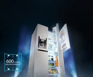 Łatwiejszy dostęp do 600 litrów mega pojemność 600 litrów mega pojemności umożliwia lepszą organizację i mądrzejsze przechowywanie żywności w lodówce. Możesz do niej włożyć wszystko, czego potrzebujesz. |