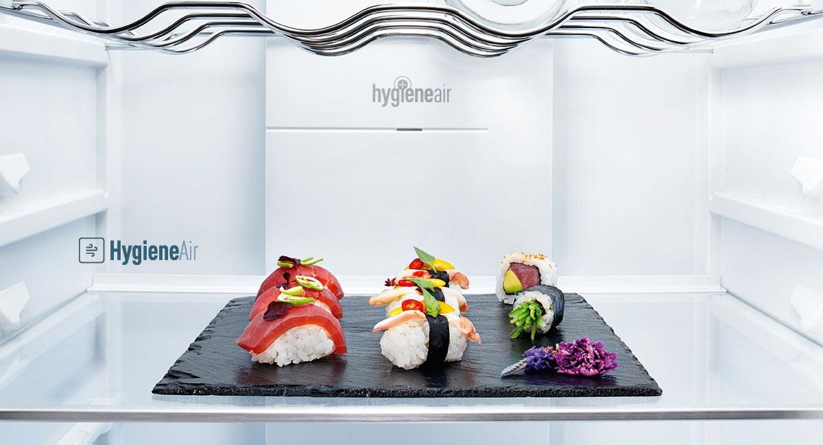 Komora ChillerCase pozwala przechowywać ryby i mięso w idealnych warunkach, a technologia HygieneAir gwarantuje stały przepływ powietrza wewnątrz lodówki, aby utrzymywać szkodliwe bakterie z dala od żywności. Dzięki temu zapewniasz żywności maksymalną higienę i możesz cieszyć się jej dobrym smakiem.