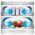 | Technologia Multi Flow Chłodne powietrze przepływa przez liczne otwory na wysokości każdej półki, zapewniając równomierne chłodzenie w całej lodówce oraz szybki powrót do właściwej temperatury po otwarciu i zamknięciu drzwi. Dzięki utrzymaniu stabilnej temperatury żywność jest cały czas przechowywana w chłodzie, a co się z tym wiąże – dłużej zachowuje świeżość. |