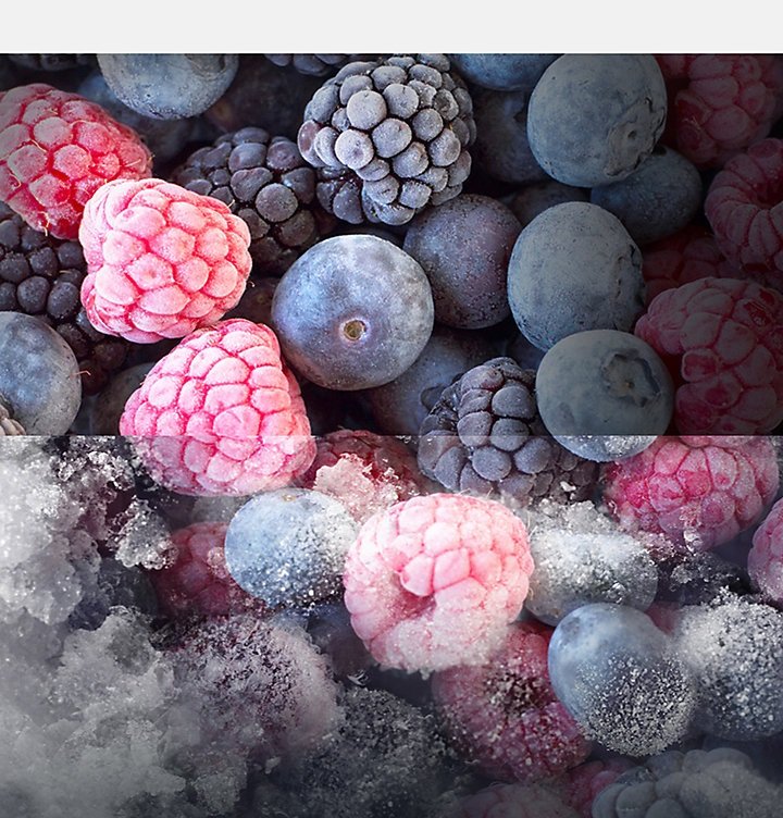 | Koniec z gromadzeniem się lodu Przechowywane produkty na długo zachowują świeżość, walory odżywcze, pyszny smak oraz swój naturalny kolor, a brak osadzającego się szronu zapewnia więcej przestrzeni. Technologia No Frost pozwala raz na zawsze pożegnać się z nieprzyjemnym obowiązkiem rozmrażania lodówki! |