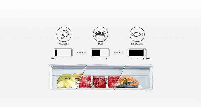 Szybkie chłodzenie Szuflada CoolSelect Duo pozwala na jeszcze większą wygodę w przechowywaniu żywności, a produkty pozostają świeższe i smakują wspaniale. Dzięki niezależnej kontroli można ją łatwo ustawić na 3 różne temperatury, tworząc idealne warunki do przechowywania warzyw, mięsa lub ryb i owoców morza. |