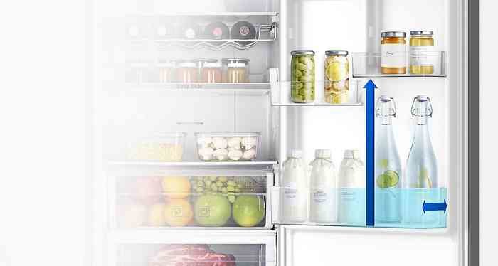 | Równomierne chłodzenie System All-Around Cooling równomiernie chłodzi każdą część lodówki. Zimne powietrze wdmuchiwane jest przez otwory wentylacyjne umieszczone na kilku poziomach, dzięki czemu temperatura wewnątrz jest stabilna, a jedzenie dłużej pozostaje świeże. |