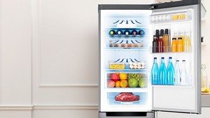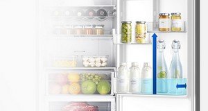 | Równomierne chłodzenie System All-Around Cooling równomiernie chłodzi każdą część lodówki. Zimne powietrze wdmuchiwane jest przez otwory wentylacyjne umieszczone na kilku poziomach, dzięki czemu temperatura wewnątrz jest stabilna, a jedzenie dłużej pozostaje świeże. |