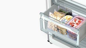 | Szuflady Full Open Box (Zamrażarka) Szersze otwieranie ułatwia układanie i wyjmowanie produktów z zamrażarki i pozwala zoptymalizować wykorzystanie przestrzeni. |