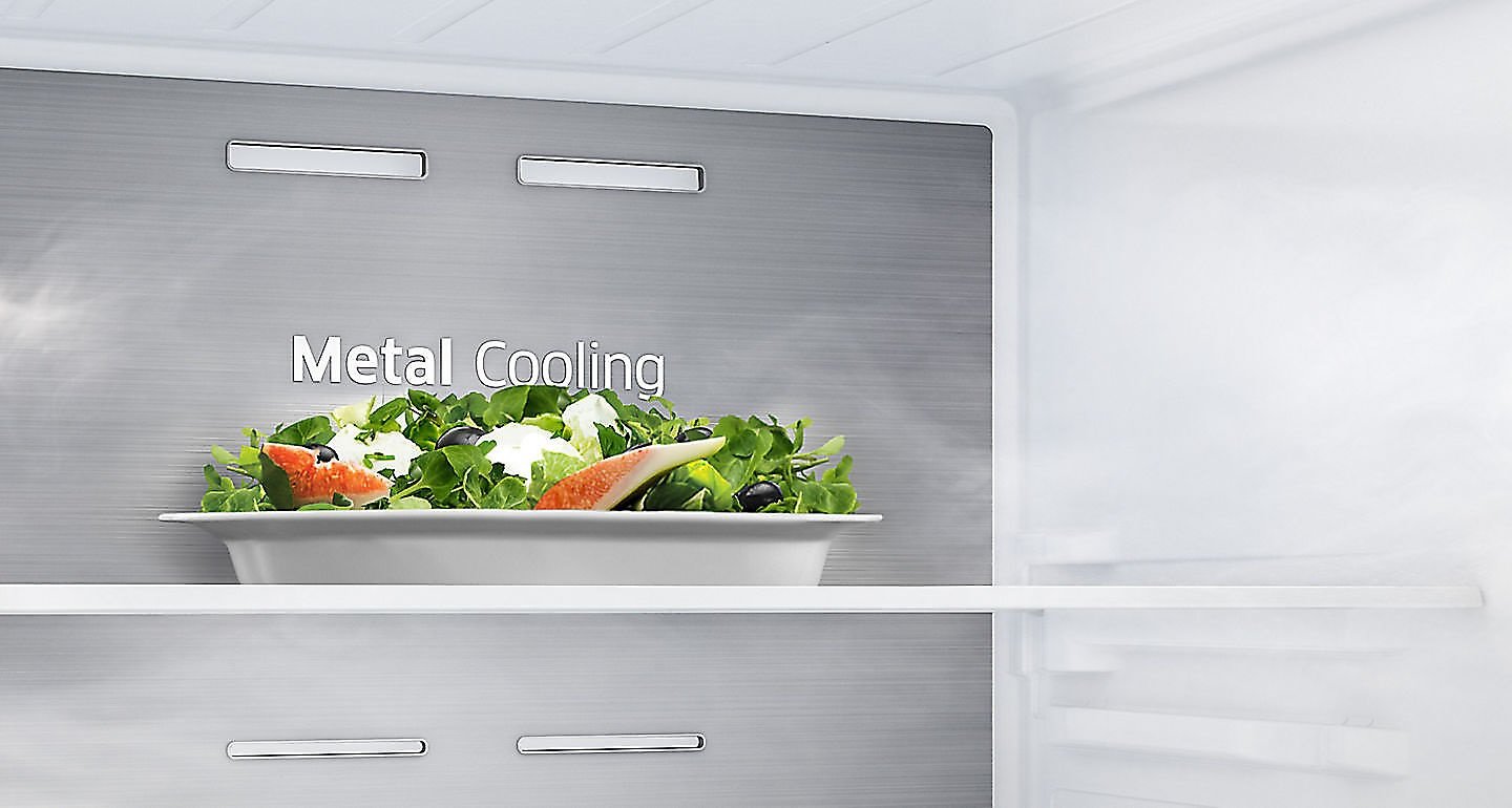 Metal Cooling Wykonana z metalu tylna ściana lodówki, Metal Cooling, magazynuje chłód tak, by optymalna temperatura panowała wewnątrz nawet przy częstym otwieraniu drzwi chłodziarki. Dzięki temu, jedzenie pozostaje świeższe na dłużej. |