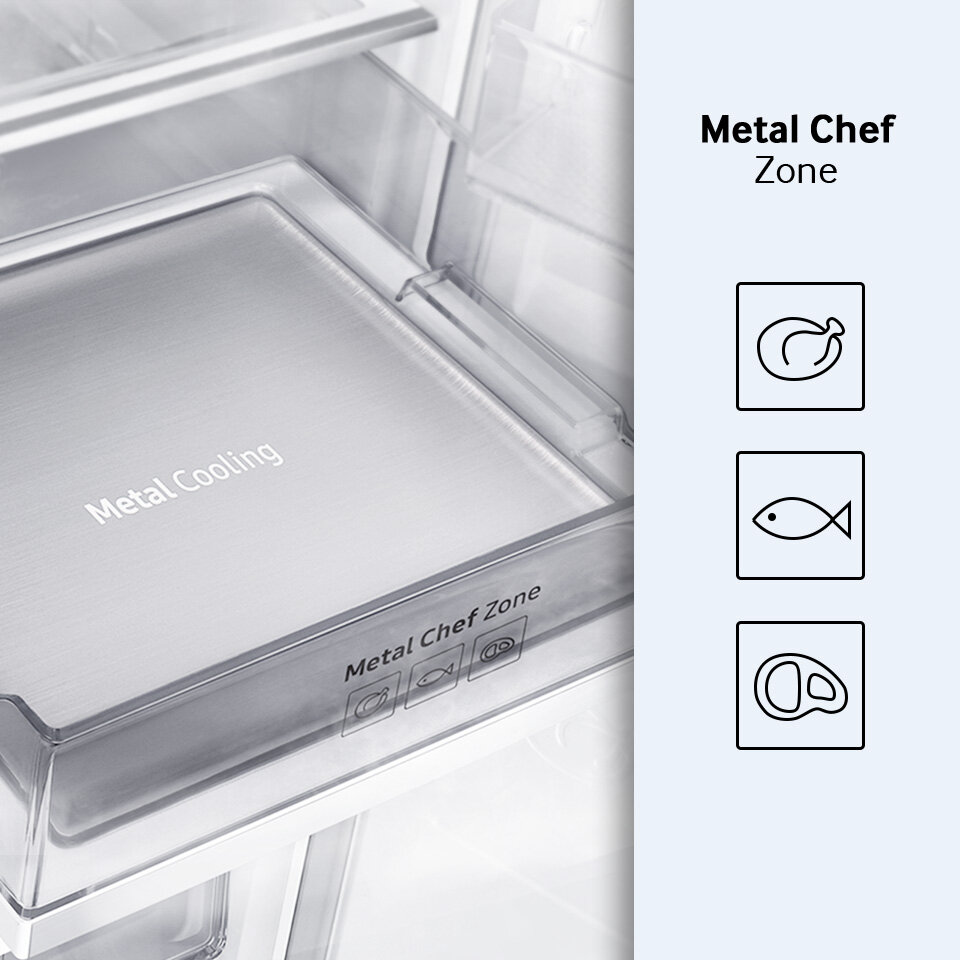 Przechowuj mięso i ryby w optymalnych dla nich warunkach w szufladzie o obniżonej temperaturze, wykończonej metalową płytą. Produkty zachowają na dłużej świeżość i smak.
