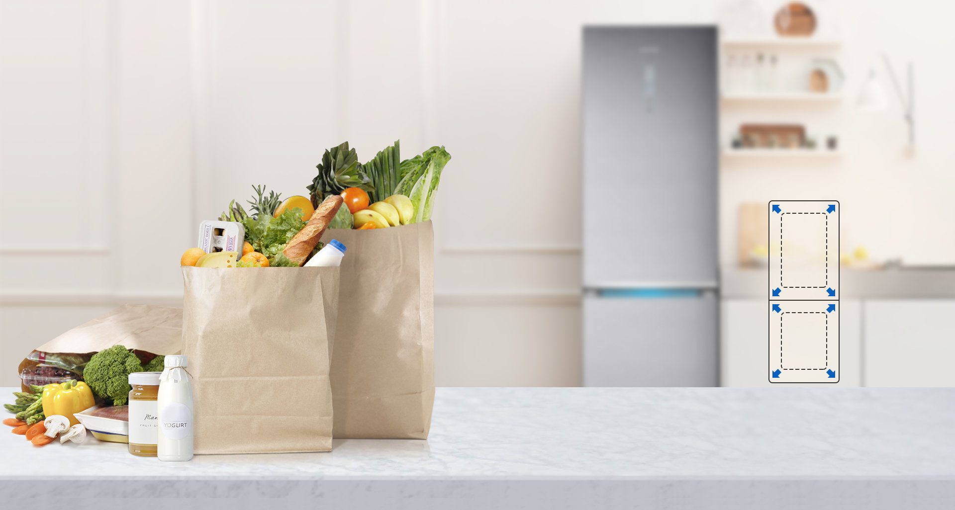 Koniec z gromadzeniem się lodu Przechowywane produkty na długo zachowują świeżość, walory odżywcze, pyszny smak oraz swój naturalny kolor, a brak osadzającego się szronu zapewnia więcej przestrzeni. Technologia No Frost pozwala raz na zawsze pożegnać się z nieprzyjemnym obowiązkiem rozmrażania lodówki!