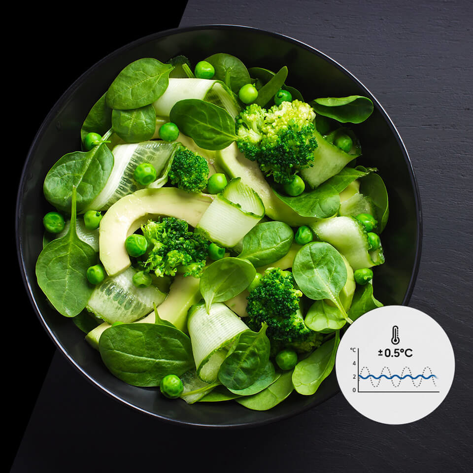 Tryb dba o stałą, precyzyjną pracę lodówki i ogranicza wahania temperatury do ±0,5°C.