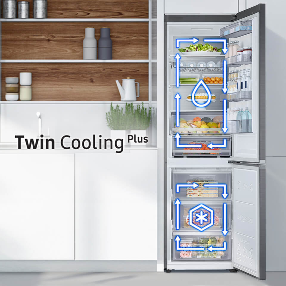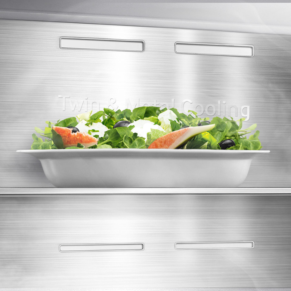 Optymalna wilgotność utrzymana przez dwa niezależnie od siebie pracujące obiegi chłodzenia w chłodziarce i zamrażalniku. Zapobiegają mieszaniu się zapachów.